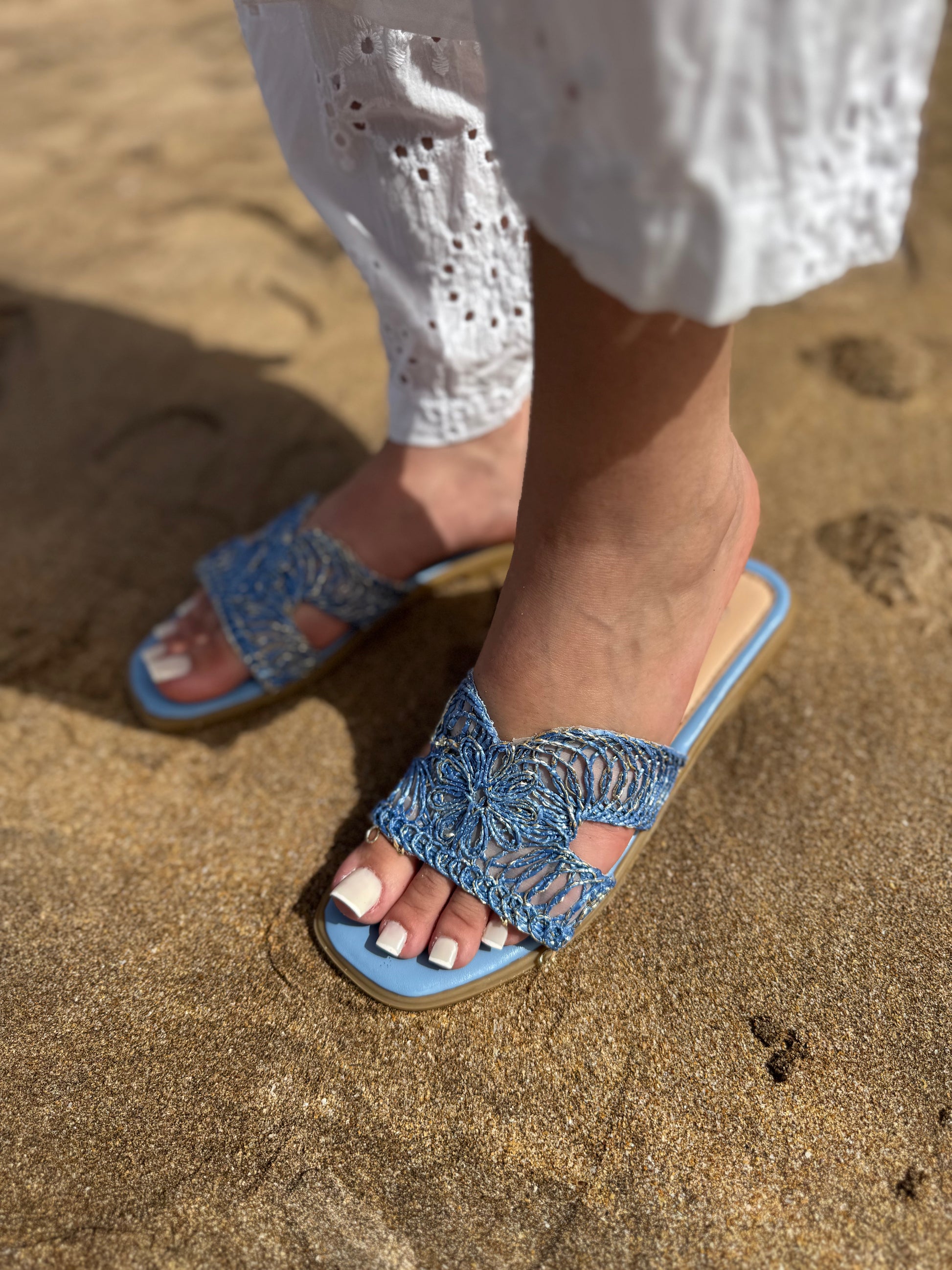 Laissez-vous séduire par cette sandale à la fois chic et bohème, confectionnée avec finesse en raphia tressé. Son motif floral délicat et ses doubles brides en font une pièce unique, parfaite pour l’été. La semelle carrée et la teinte beige douce assurent confort et raffinement à chaque pas.